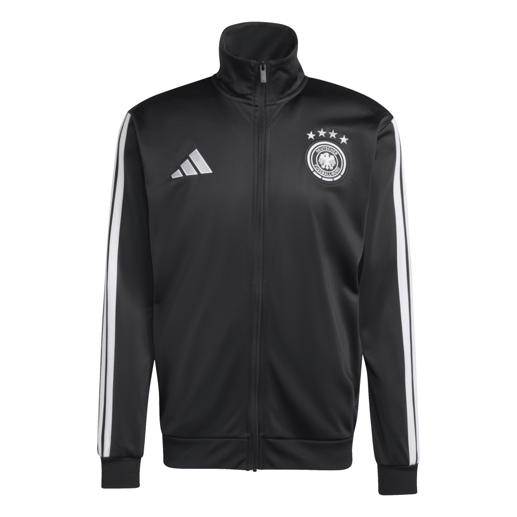 Das Deutschland DNA Track Top verbindet Fußballtradition mit einem zeitgemäßen Look und interpretiert den Klassiker mit einer schlichten, eleganten Passform neu.